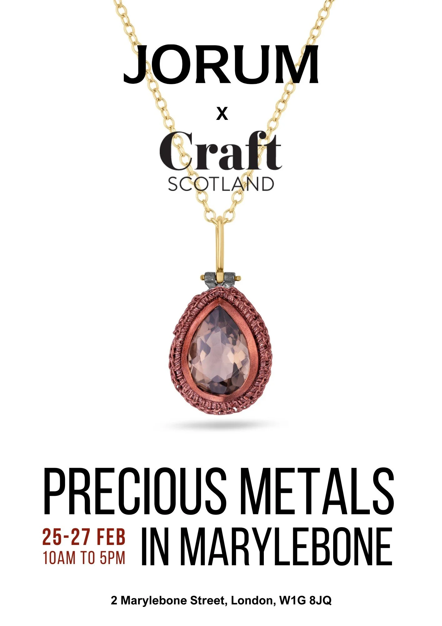 Craft Scotland: Presented by Jorum Studio and Craft Scotland, Precious Metals in Marylebone brings three of Scotland’s most exciting jewellers and silversmiths to Jorum’s flagship London showroom in the heart of Marylebone Village.